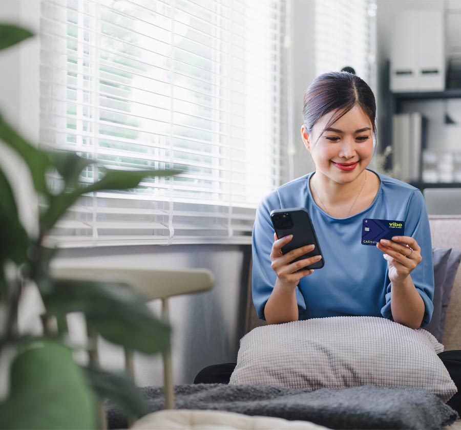 All Vibe debit and credit cards come with built-in contactless technology